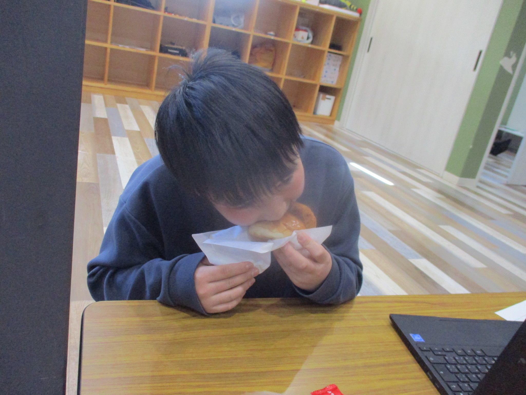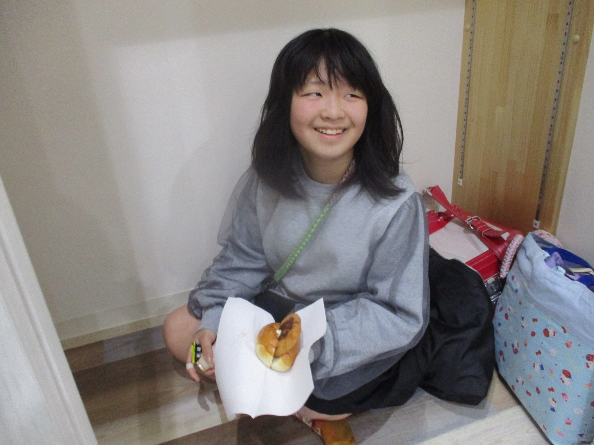 手作りおやつのコロッケパンに大喜び‼美味しいね💓