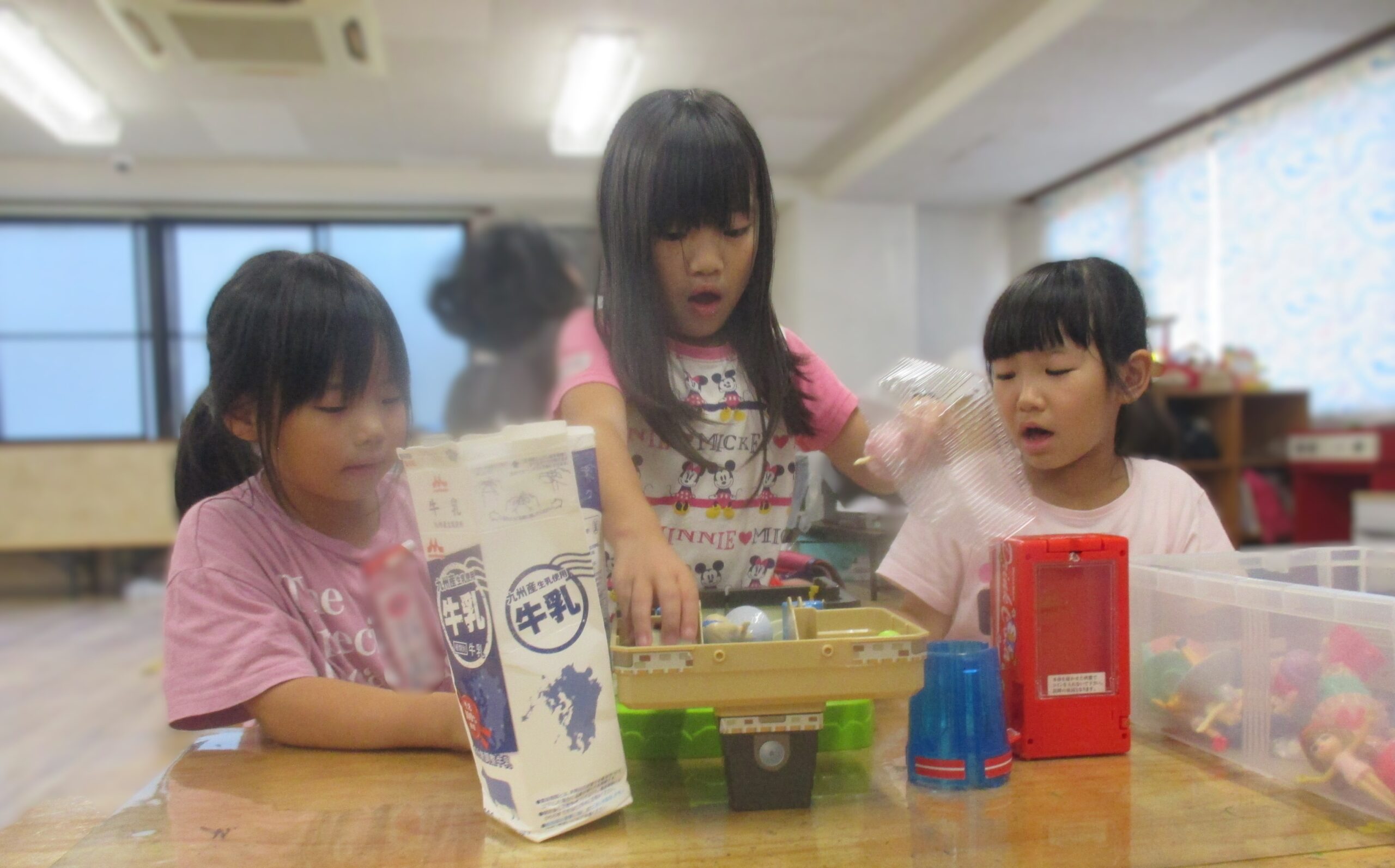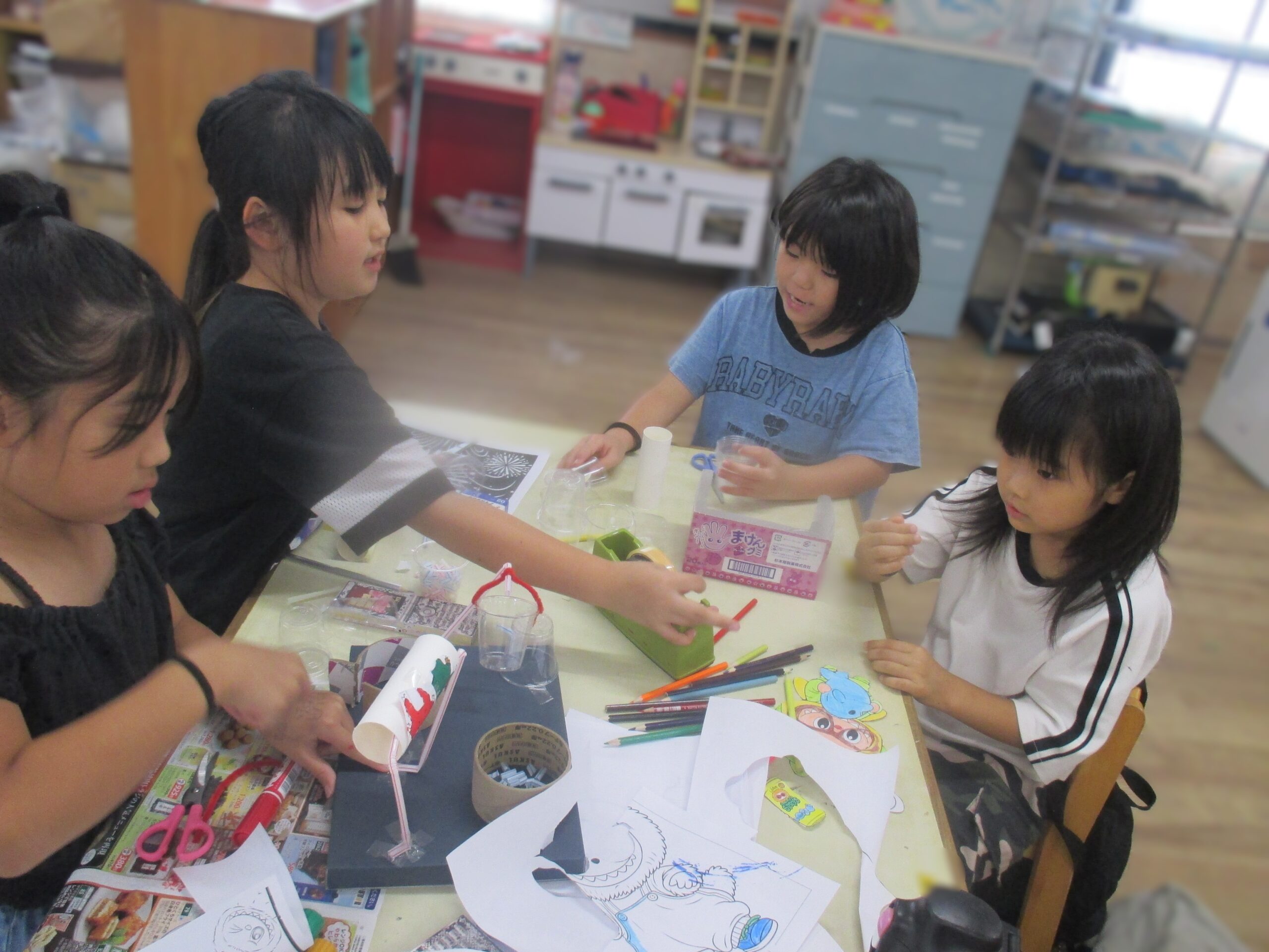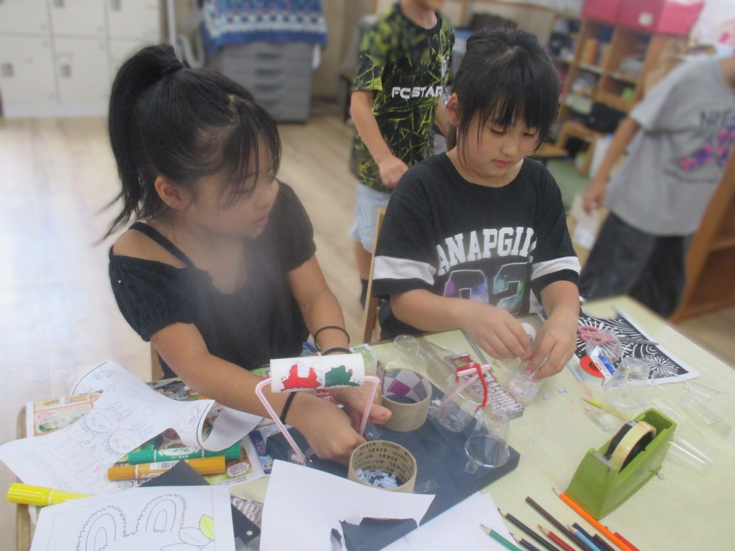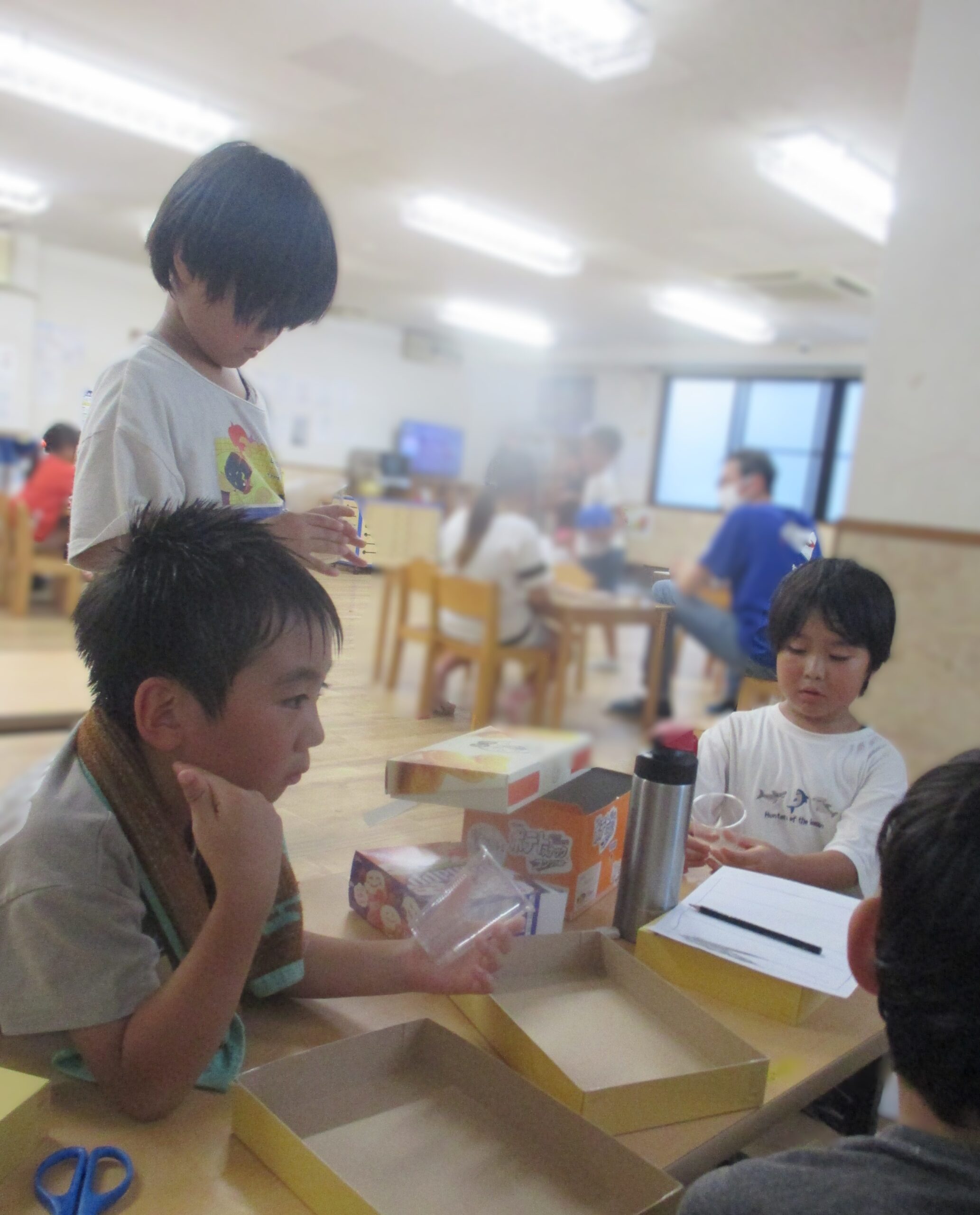 宿題が終わり、 なかよく 廃材で 工作中😆✌🏻