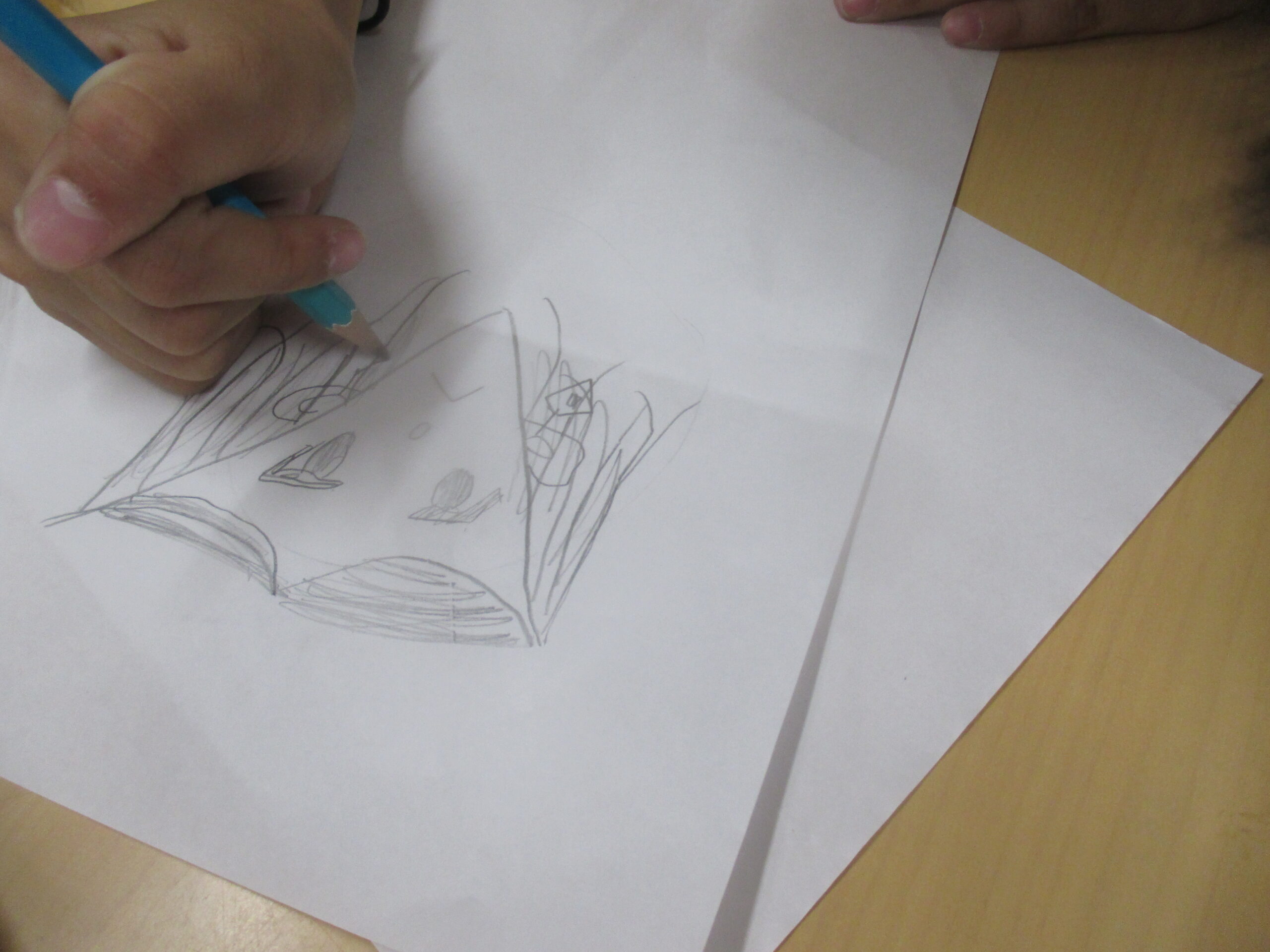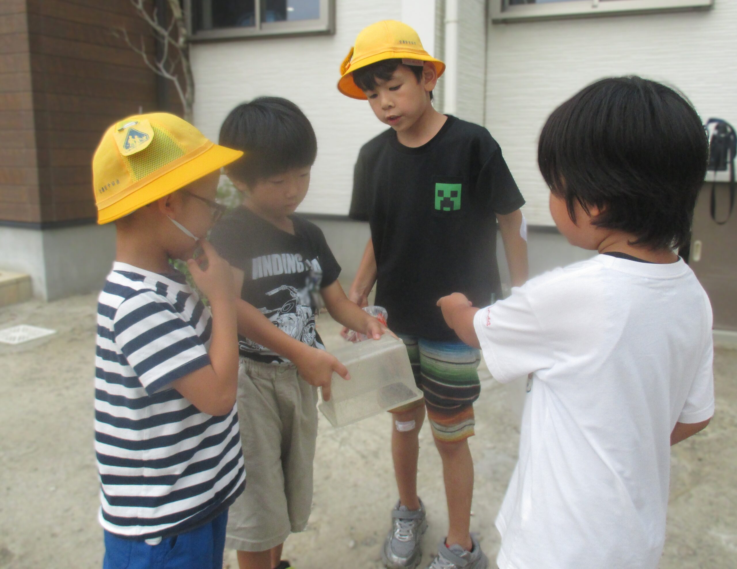 「 ぼくが捕まえたカマキリをお世話してるよー🎵」