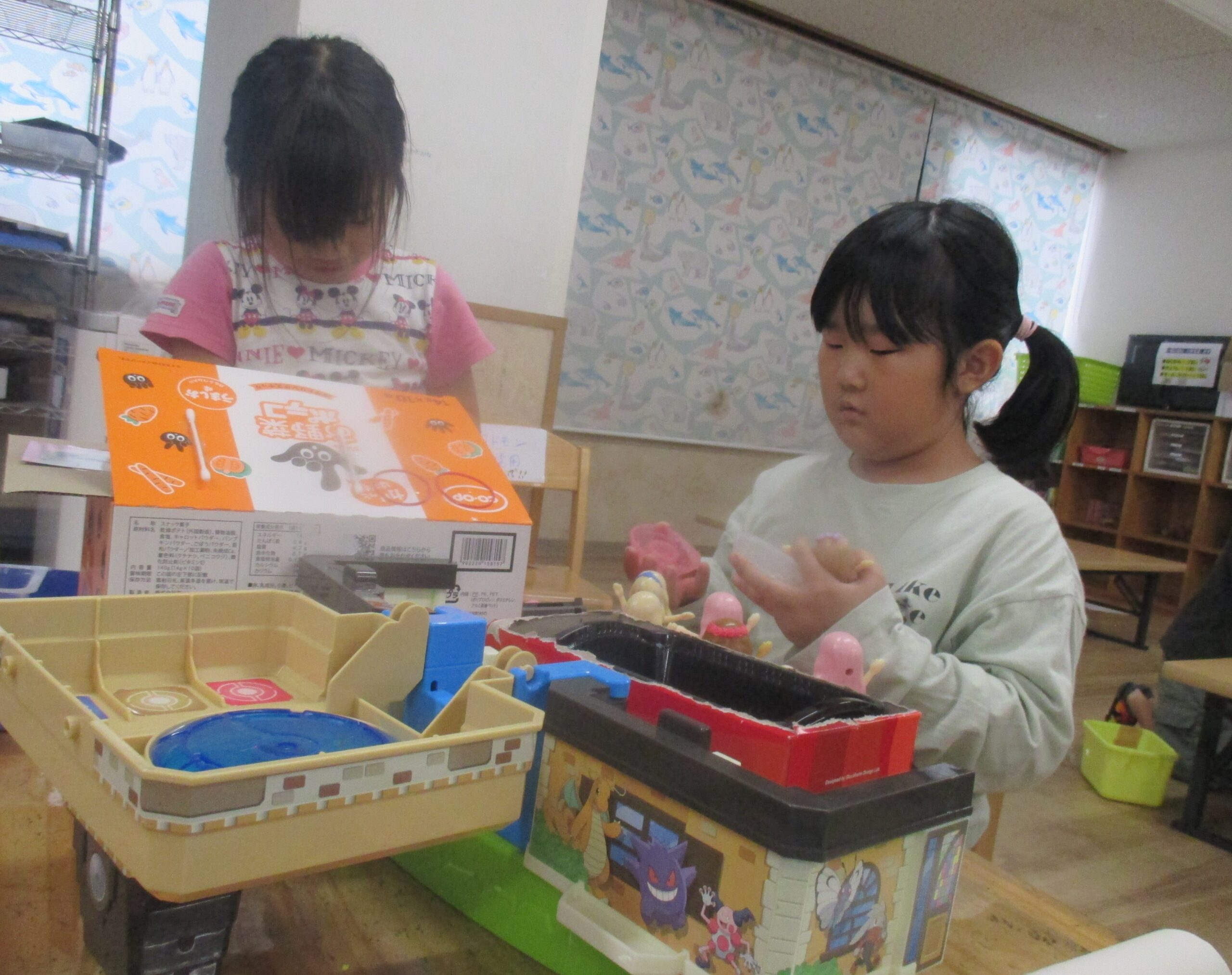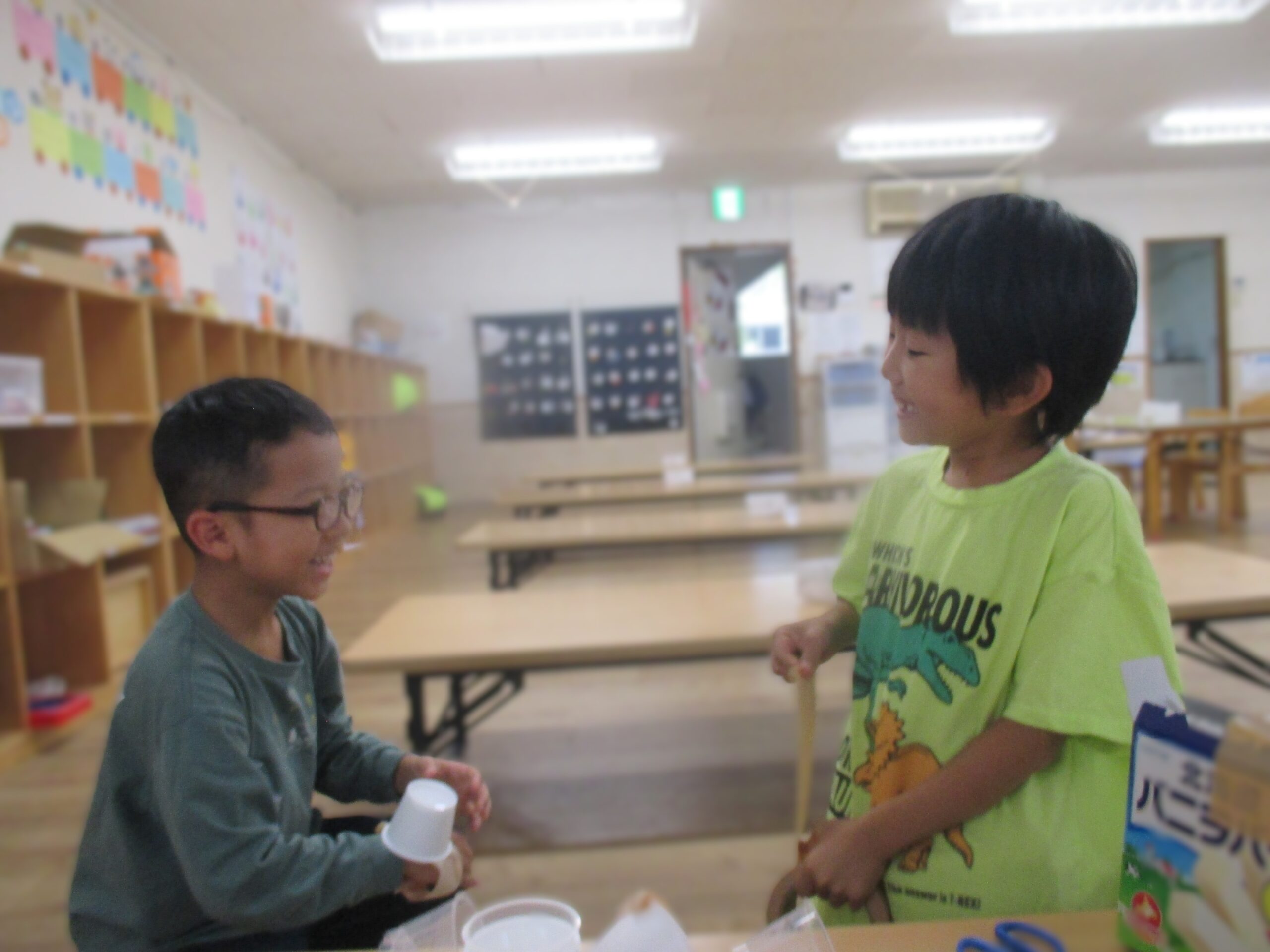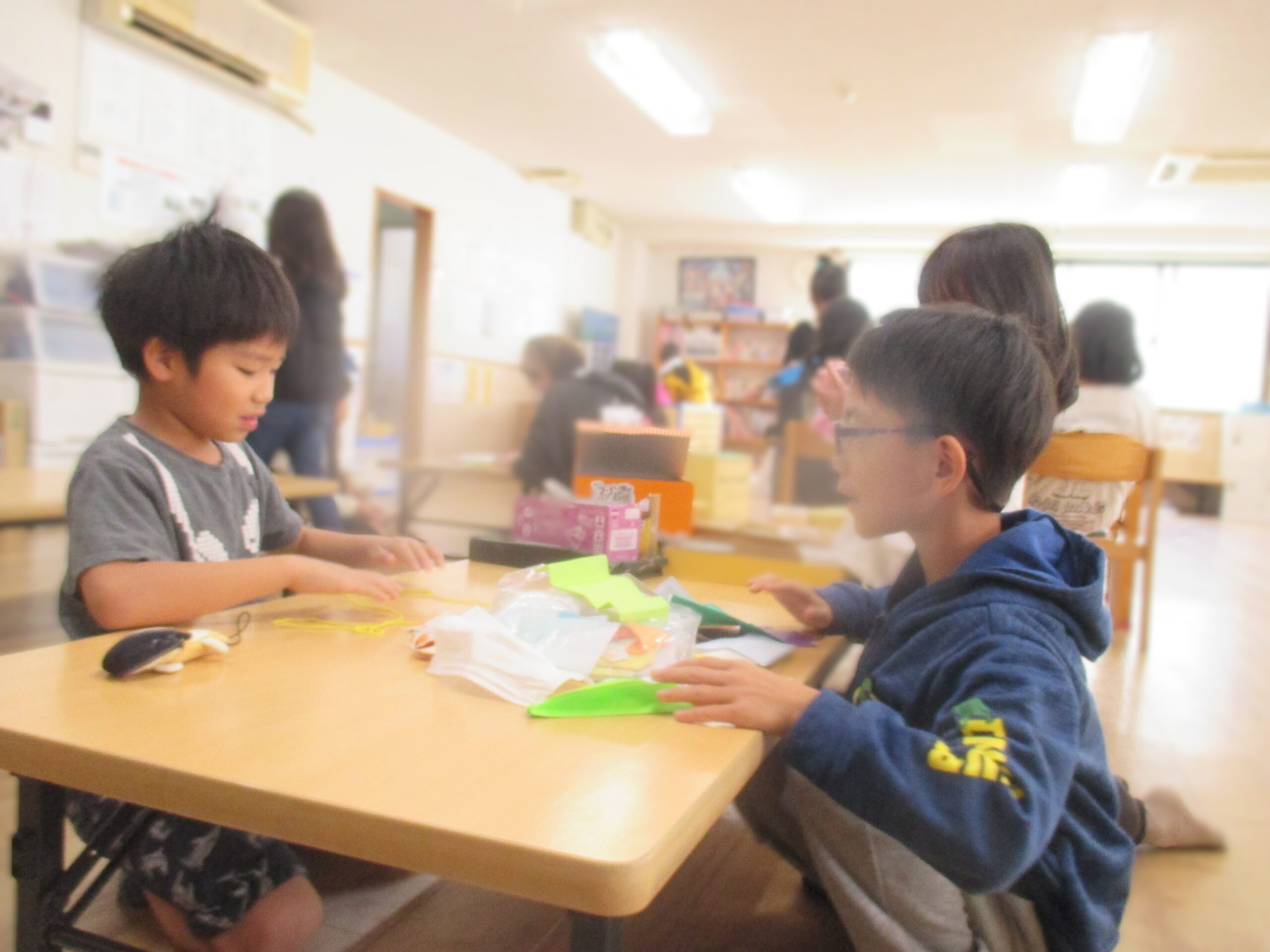 宿題が終わり、 なかよく 廃材で 工作中😆✌🏻