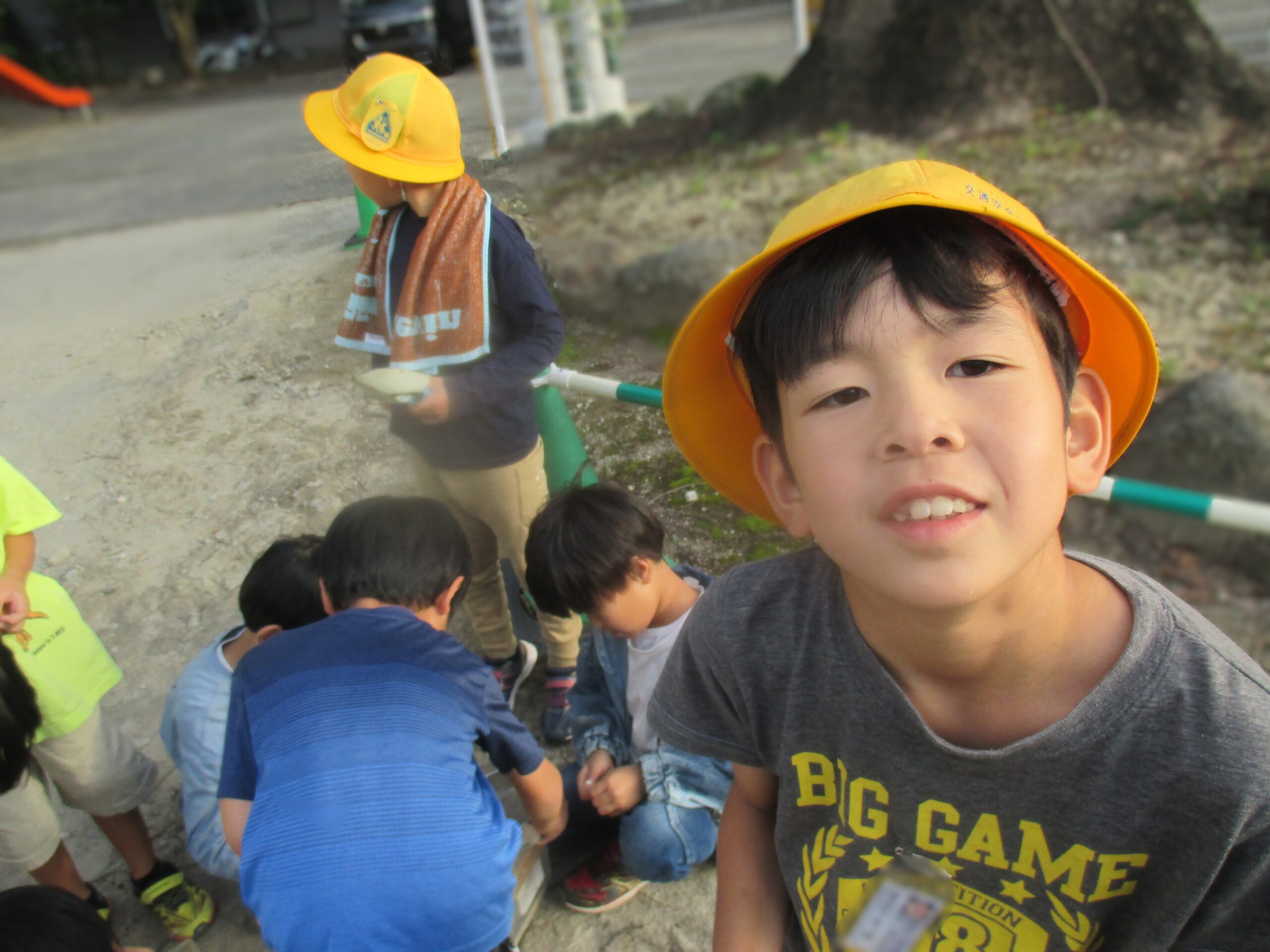 「 ぼくが捕まえたカマキリをお世話してるよー🎵」