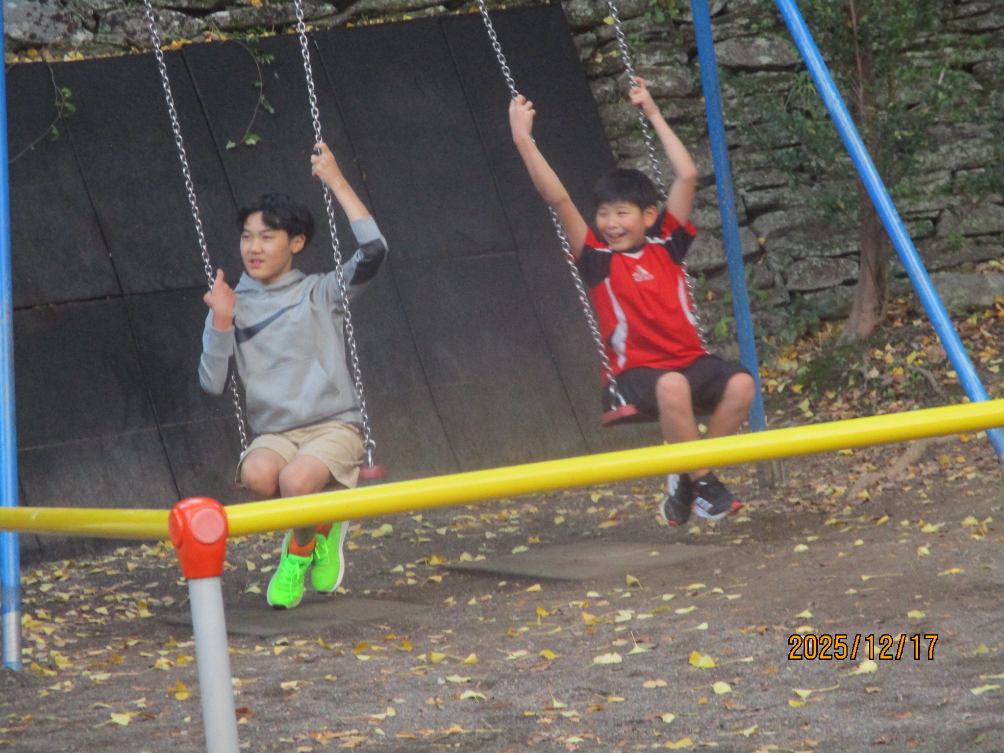 ブランコ柵を渡っています🧑🚒