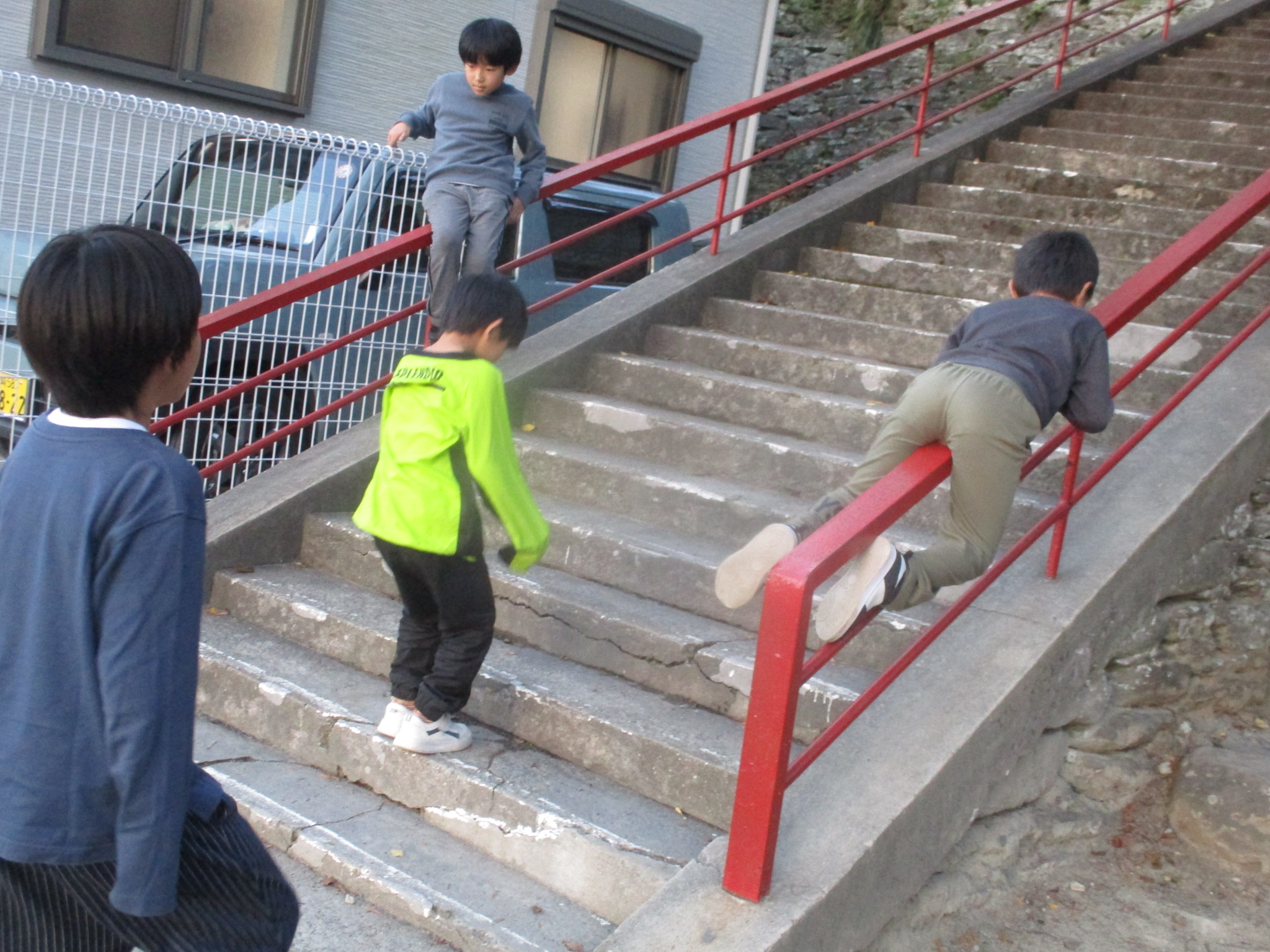 階段でのんびりしたり、走ってみたり🏃♀️➡️