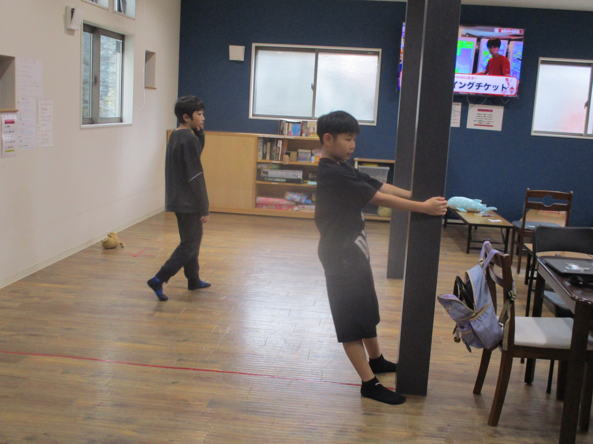 部屋ではタイピング、ボール遊びやプラ板工作などしていました😄