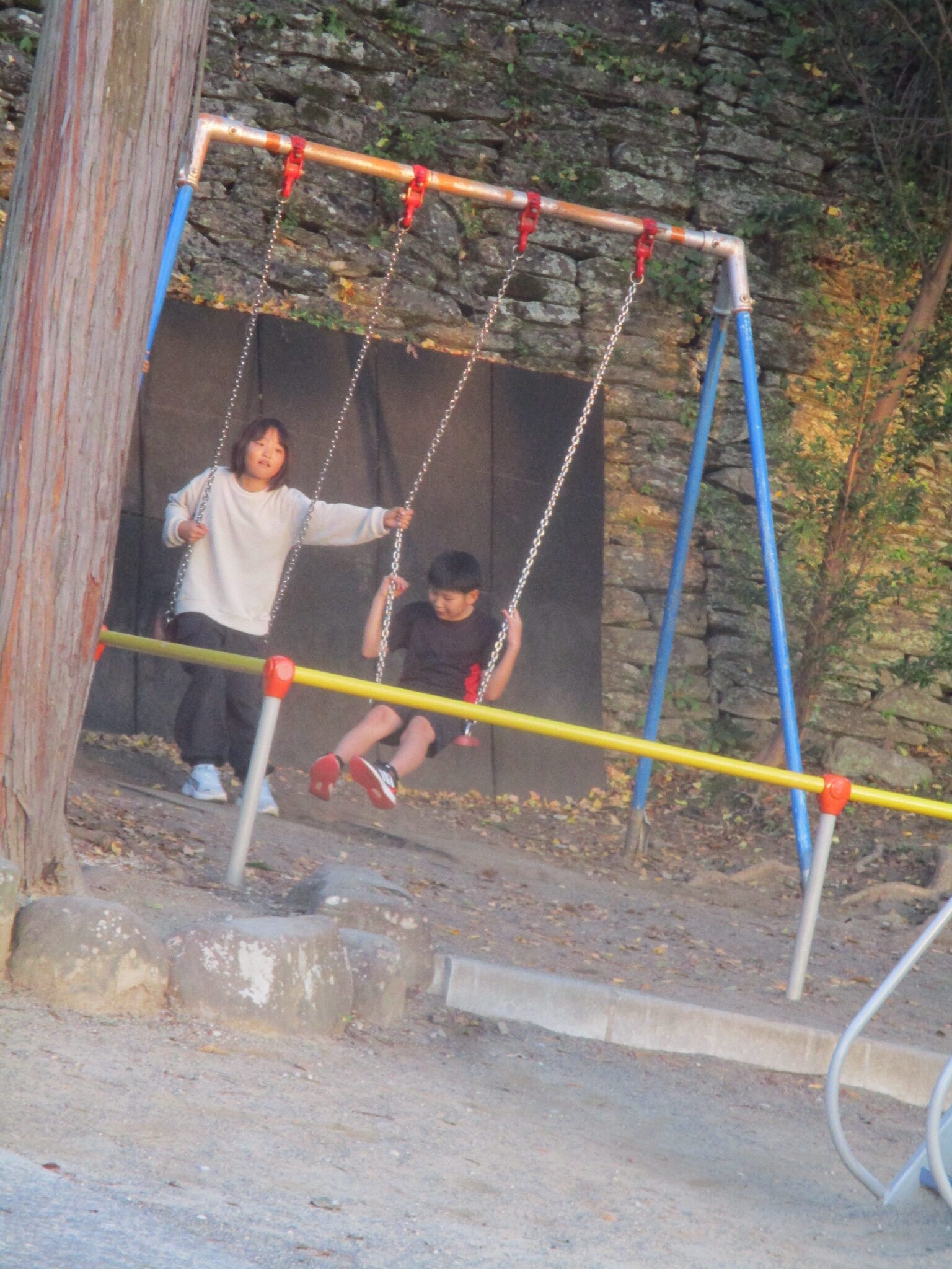ブランコ柵を渡っています🧑🚒